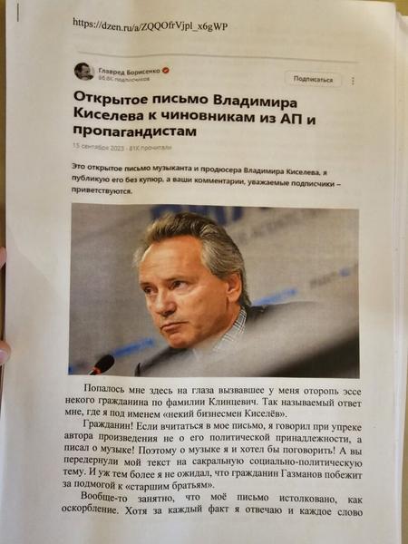 UPD: Позже Владимир Владимирович Киселев прокомментировал нашу публикацию и обратил внимание на то, что мы не умеем писать и, скорее всего, читать. Также объяснил, что это была не раздача компромата, а раздача фактов о певце.