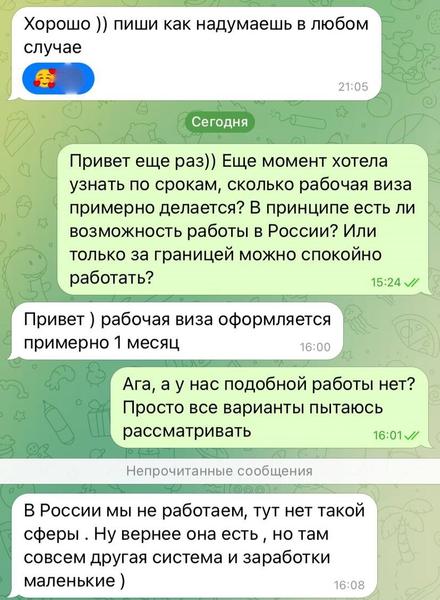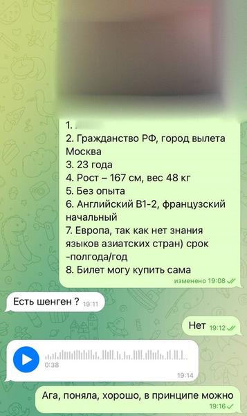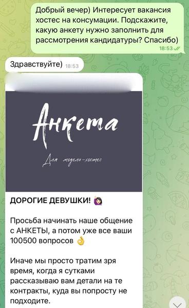 Если все условия устраивают – следует заполнить анкету и отправить ее уже другому менеджеру агентства. Однако «Страсти» этого делать не стали, так как заранее узнали печальные истории девушек, которые, будучи консуматоршами, стали жертвами. Подробнее об этом читайте в расследовании на нашем сайте.