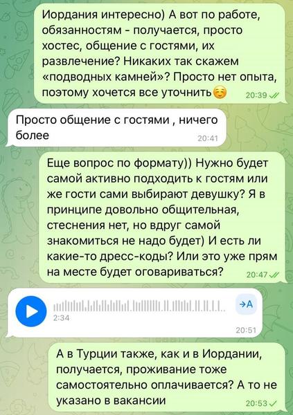Второе по популярности направление – Иордания. Но здесь есть сразу несколько больших минусов, о которых предупреждает агентство. Самый большой из них – это полиция, которая в любой момент может «накрыть» клуб. «Можно просидеть в участке несколько суток, а то и недель, пока кто-то или государство не купит билет назад», - рассказала менеджер по найму персонала.