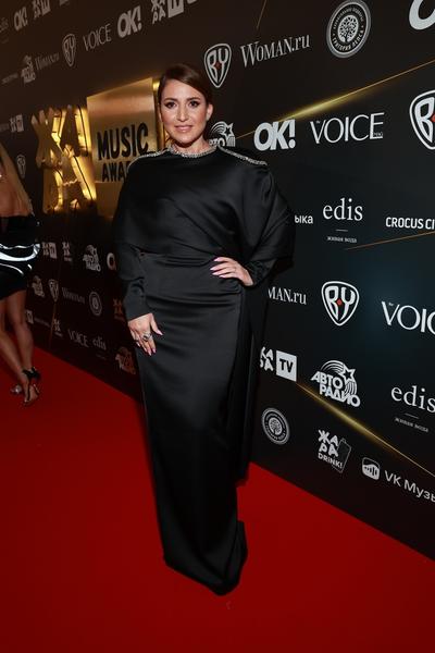 Постоянная ведущая премии Юлия Барановская перед началом мероприятия позировала фотографам в смокинге на голое тело. Пару ему составили широкие черно-белые брюки. На сцену Барановская вышла уже в облегающем сверкающем серебристом платье.