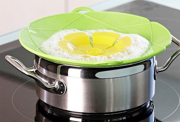 Силиконовая крышка-невыкипайка имеет форму вогнутого цветка со съемной
