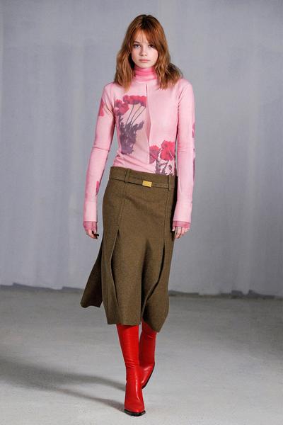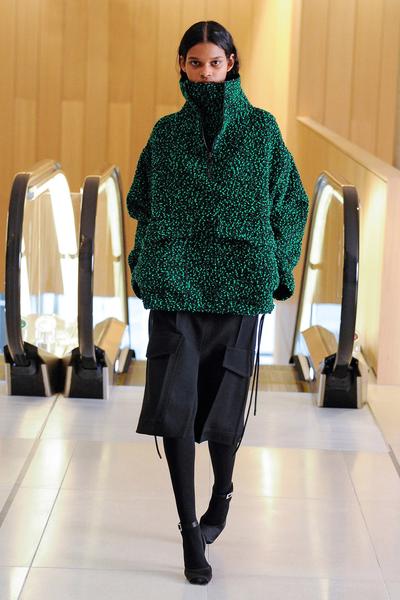 Позаимствовать с подиума стоит юбки-карандаши с крупными карманами с клапанами и одежду со спортивными элементами (дизайнер предложила гиперобъемные толстовки, анораки и гибрид из платья и олимпийки). Без чего не обойтись, так это без водолазок, которые займут место второго слоя — под плотные рубашки, жакеты и платья.