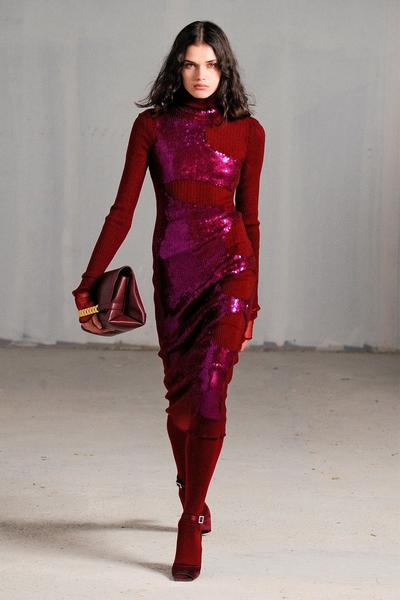Для самых смелых — total-образы из цветных пайеток, необычные оттенки и их сочетания (ореховый с насыщенным ментоловым, морская волна и лазурь, жгуче-алый и пудровый).