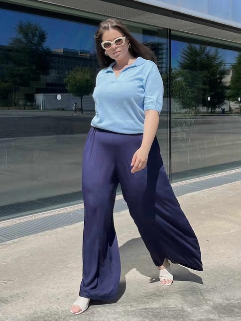 Особенно хорошо это работает в случае с брюками в пол, когда они прикрывают часть туфель. Для такой элегантной вариации подойдут брюки клеш или палаццо.