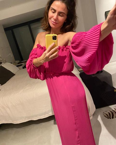 На этот раз Джованна предстала сразу в двух образах. Актриса увлеклась цветотерапией и вам советует. В ход пошли самые насыщенные оттенки, которые зададут настроение и привлекут к себе все взгляды. Первый лот — наряд, будто позаимствованный у куклы Барби, насыщенного, почти неонового розового цвета, с пышными оборками и акцентным поясом на талии. Второй — солнечно-желтый комплект из топа с объемными рукавами и юбки. Одинаково хорошо аутфиты дополнила пара броских серег-хупов.
