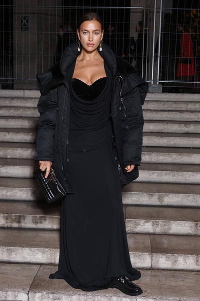Ирина Шейк отметила явно затянувшиеся выходные в компании лучших друзей Рикардо Тиши, Стеллы Максвелл (с которой ей приписывают роман) и Ребекки Мартинес. Модель поэкспериментировала на тему образа Мортиши Аддамс, надев силуэтное черное платье Burberry с открытой спиной и дерзкими разрезами на груди. Дополнили образ акцентные украшения, пара лаконичных босоножек и жгуче-алая помада.