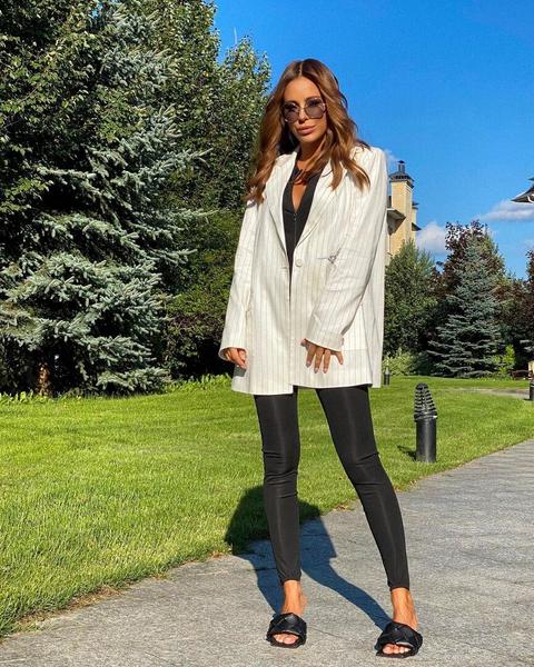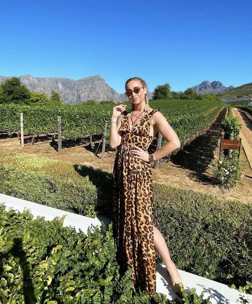 Ольга Бузова подружилась с хищниками из семейства кошачьих с помощью макси-платья с интригующим разрезом. С активным принтом певица справилась с помощью лаконичных деталей — бежевых сандалий-слайдов Valentino и стильных солнцезащитных очков с цепочками на дужках. Но артистка была бы не собой, если бы для прогулки вдоль африканских виноградников не прихватила массивные золотые часы Rolex и узнаваемый браслет-змею Bvlgari, усыпанный бриллиантами.