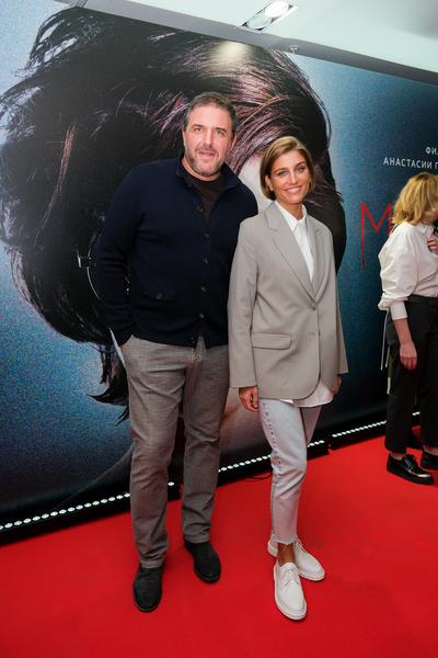 Обложка с возлюбленной Максима Виторгана получилась минималистичной. Нино драматично позирует в монохромном образе цвета крем-брюле. На ней силуэтное пальто миди с фигурными лацканами и классические брюки, полностью закрывающие обувь (по рецепту Виктории Бекхэм).