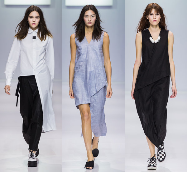 Привычный для дизайнера стиль деконструктивизма обернулся совершенно новой стороной — это максимально удобные вещи на каждый день, но не лишенные своего шарма благодаря использованию асимметрии, плоской драпировки и тканей с эффектом небрежной помятости. Главная гордость дизайнера — специально созданный эффект неотутюженных сгибов вещей, будто только что взятых с полки гардеробной комнаты. Этот милый акцент говорит о свободолюбивой и независимой натуре, отмечает Наташа.