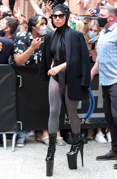 Для нового выхода Леди Гага вооружилась роскошным платьем Jason Wu с корсетным лифом без бретелей, акцентом на талии и пышной юбкой. Образ в лучших традициях минимализма дополнили брутальные туфли затейливого силуэта — в духе тех, что певица носила в 2010-х. В завершение — акцентные серьги, щедро усыпанные бриллиантами.