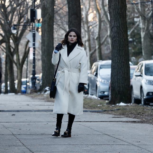 Певица Селена Гомес сделала выбор в пользу длинного пальто-халата молочного цвета — и не прогадала! Ведь оно — одно из самых «горячих» в этом сезоне. Звезда дополнила наряд черной классической сумкой и лаковыми сапогами с акцентными цепями из золота.