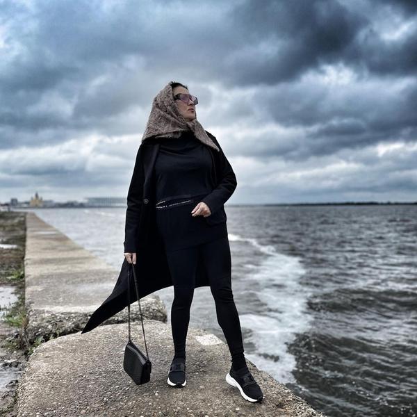 Для культурной программы Анна рискнула и выбрала двойку из жакета и расклешенных брюк, полностью выполненную из черного кружева. Места для фантазии осталось мало: текстура ткани максимально прозрачная, но скрывать артистке абсолютно нечего. Костюм выгодно открыл лучшие ракурсы на стройные ноги.