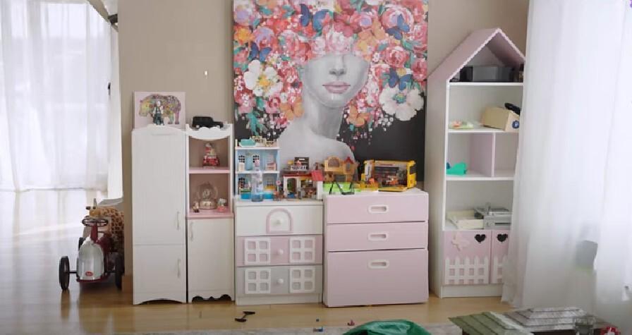 У каждого ребенка в семье есть своя комната, также есть много технических помещений. Например, кладовую Самойлова переделала под гигантскую гардеробную. Она призналась, что ее вещи просто не помещались в шкафы, поэтому она решила перенести все в отдельное место. Кроме того, есть и уголок для животных звезд. В доме живут кролики, ящерицы и тараканы. Последними приходится кормить пресмыкающихся.