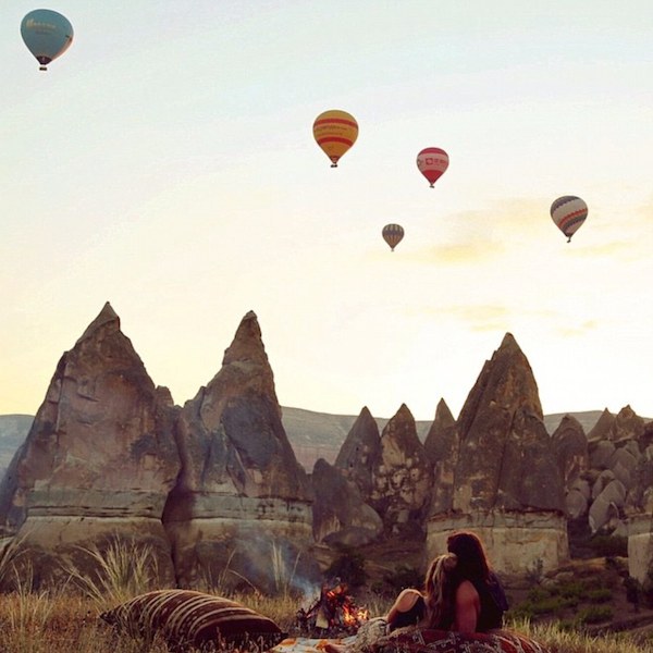 В 5 часов утра, когда небо еще было совсем черным, 26-летний Джордан Боуен разбудил свою подругу Мэдлин Рельф, они сели на скутер и направились в Долину любви, что в Национальном парке Гёреме, Турция. Первые лучи только начали появляться из-за горизонта. Пара развела костер и стала ждать. Когда солнце взошло, в небо поднялись сотни воздушных шаров. Влюбленные сделали несколько снимков. «Отличное начало дня», — подписала Мэдлин фотографию.