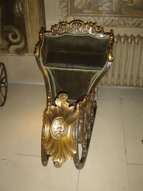 Прообраз детской коляски появился в 1733 году благодаря англичанину Уильяму Кенту. Заказал этот детский экипаж Уильям Кавендиш, герцог Девонширский, для своих шести малолетних детей. Первые коляски были похожи на транспорт для взрослых - кареты и дилижансы. Плетеные корзины крепились на три или четыре коляски. С одной стороны прикреплялась ручка. В коляски запрягали пони, козу или собак.