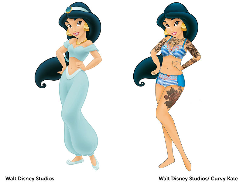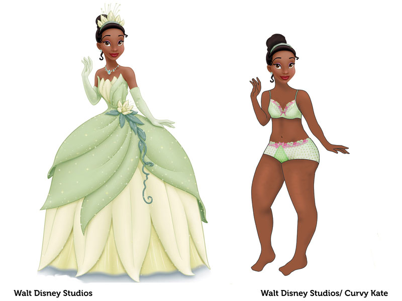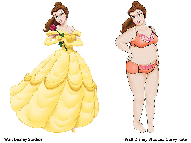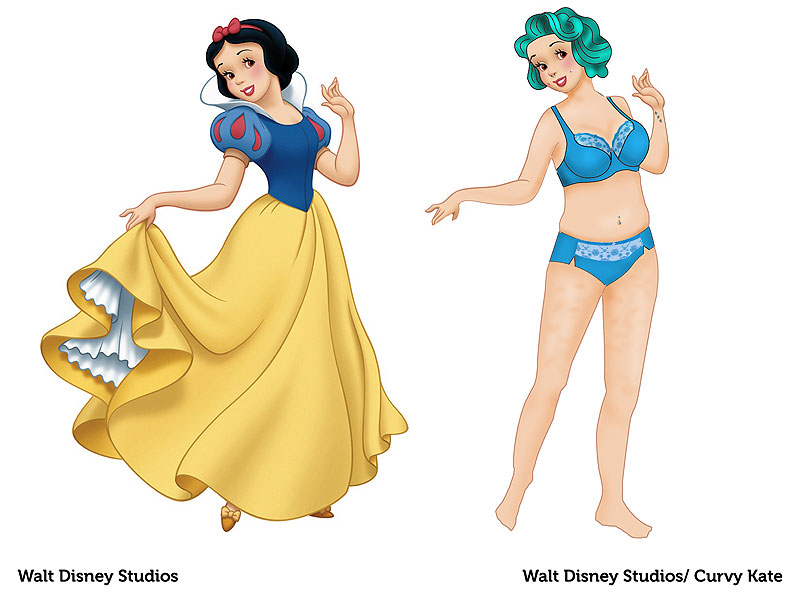 Руководство британского бренда нижнего белья Curvy Kate, специализирующегося на размерах D-K, пошло дальше. Директор PR-отдела компании, 25-летняя Шантель Крэбб (Chantelle Crabb) попросила художников нарисовать, как выглядели бы Диснеевские принцессы, если бы у них были тела обычных женщин.