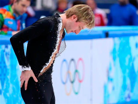13 февраля за полчаса до начала соревнований мужчин-одиночников фигурист Евгений Плющенко снимается с соревнований. Причина - травма спины. За тем, как легендарный фигурист, от которого в этих соревнованиях ждали так нужное нам золото, уходит со льда, держась за спину, наблюдает вся страна.