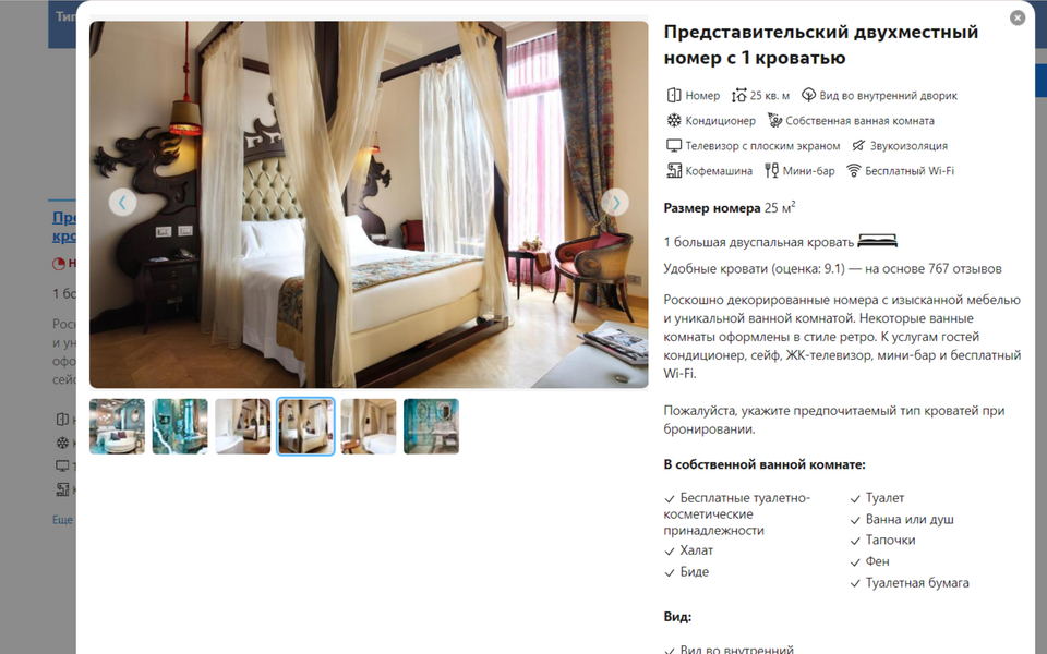 Судя по кадрам, Устинья и ее жених остановились в представительском двухместном номере. Стоимость проживания в нем с завтраками составляет около 50−53 тыс. рублей в сутки.