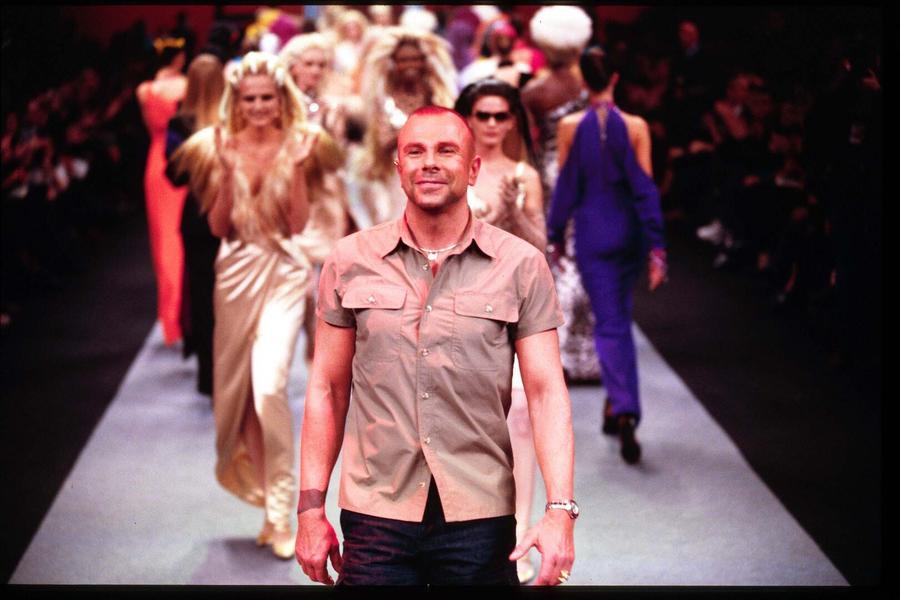 Тьерри Мюглер родился в Страсбурге во Франции. В 80-х он перевернул моду, добавив в нее больше вызова и экспрессивности. На подиуме появились модели в латексе и коже, его любимым силуэтом стал перевернутый треугольник: гипертрофированные плечи и узкая талия. Мюглер искал вдохновение в Грейс Джонс, сотрудничал с Дэвидом Боуи. Именно в костюме его авторства Боуи женился на Иман. Однако излишний эпатаж одежды дизайнера слегка опередил время, его коллекции особо не упоминались в глянце того времени.