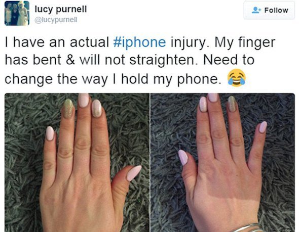 «У меня настоящая травма от айфона. Мой палец искривился и не хочет возвращаться на место. Надо как-то по-другому держать телефон», – весело заявляет девушка по имени Люси.
