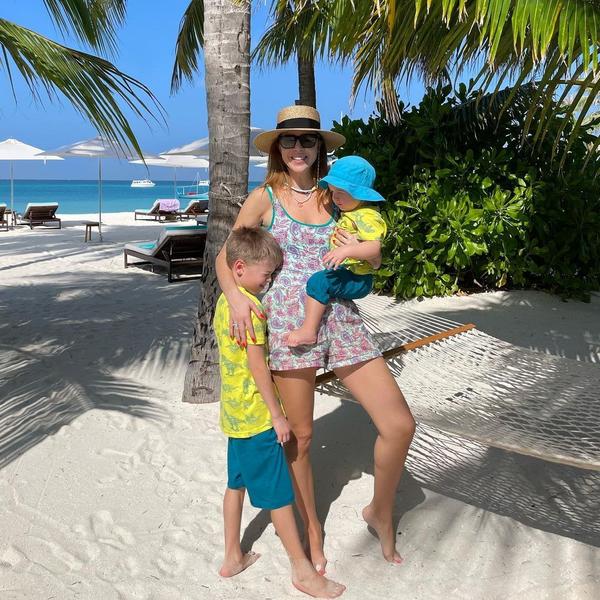 Семейная идиллия и на фото у Наташи Подольской. Звезда составила своим сыновьям от Владимира Преснякова парные пляжные образы. А сама надела хлопковый ромпер с принтом пейсли и шляпу-канотье.