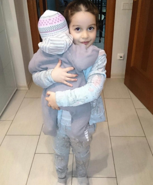 Сегодня ночью в Instagram Ксении Бородиной появилась трогательная фотография ее дочек. На снимке старшенькая Маруся держит на руках маленькую Тею: