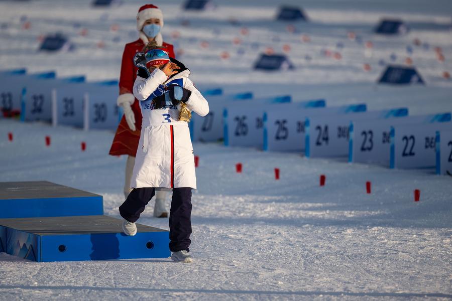 Российскую сборную лыжников в Пекине представили четыре спортсменки Наталья Непряева, Татьяна Сорина, Юлия Ступак и Анастасия Рыгалина. Наталья уверенно шла к победе, но уступила первенство норвежке Терезе Йохауг, которая еще в начале гонки ушла далеко вперед. В конце второго этапа соревнования шла борьба за 2-е и 3-е места между россиянкой Натальей Непряевой и австрийкой Терезой Штадлобер.