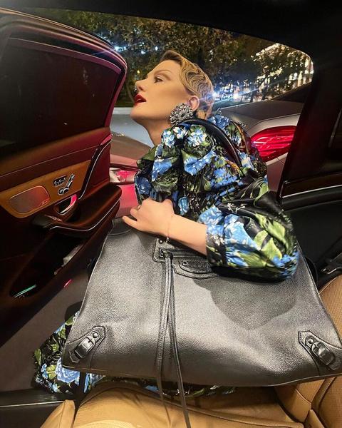 Рената Литвинова выбрала для празднования черное макси-платье, конечно же, от бренда Balenciaga, креативным директором которого является ее хороший друг — грузинский дизайнер Демна Гвасалия.