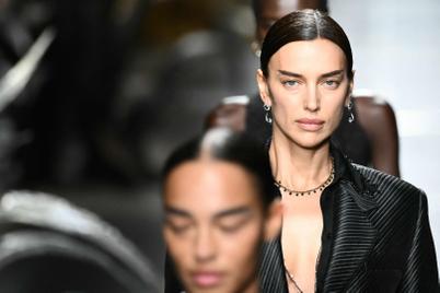 Ирина Шейк появилась на показе в жакете без бюстгальтера
