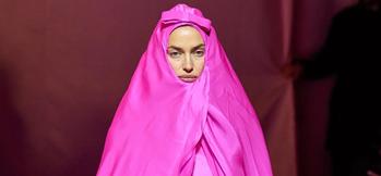 Сама скромность: Ирина Шейк вышла на подиум в гигантском розовом «коконе»