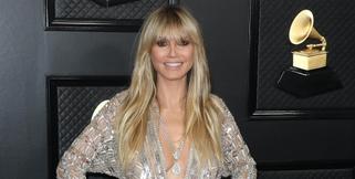 Хайди Клум появилась в платье со шлейфом-«рыбкой» и декольте из заячьих ушей