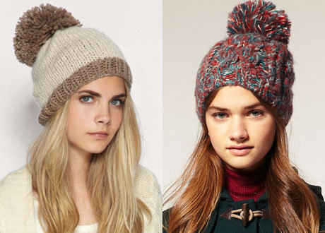 Шапка круглой формы, с отворотом. Удачный вид вязки для нее – резинка, а также вязание изнаночными или лицевыми петлями. Однако главный акцент создает крупный помпон на макушке. В этом сезоне TopShop, Guess, Zara, Gap решили добавить во взрослую шапку немного детской наивности и игривости.