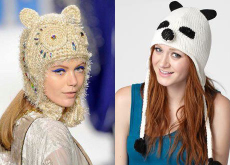 Такие модели шапок отражают образы симпатичных масок животных: зайцев, кошек, медведей, панд. Шапки этого типа представлены в самом широком ассортименте, главное, чтобы образ напоминал прототип.