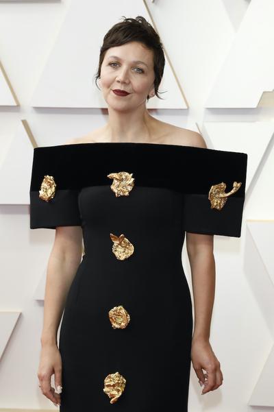 Одно из лидирующих направлений стайлинга — образы готических принцесс. Билли Айлиш утопала в бесчисленных черных оборках Gucci, Пенелопа Крус пришла, конечно же, в Chanel, а Мегги Джилленхол выгуливала кутюрное произведение Schiaparelli с золотыми «крючками».