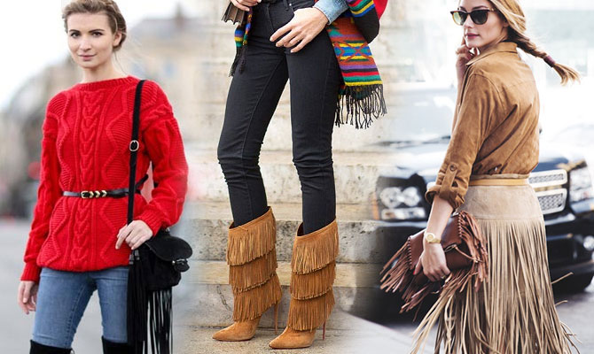 Бахрома также украшает туфли, сапоги и ботильоны, причем вовсе не обязательно носить такую обувь в паре с денимом или замшей.