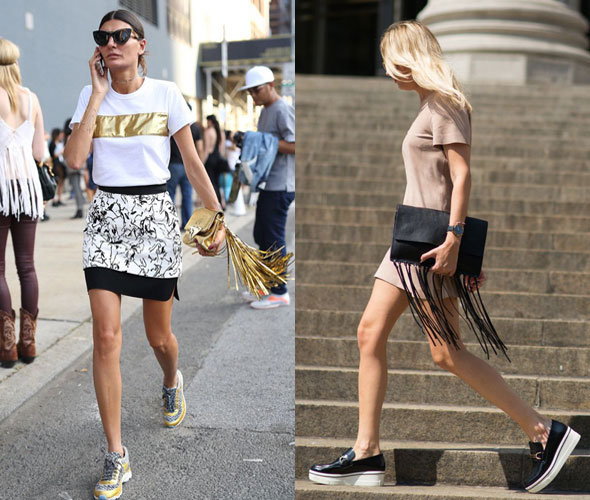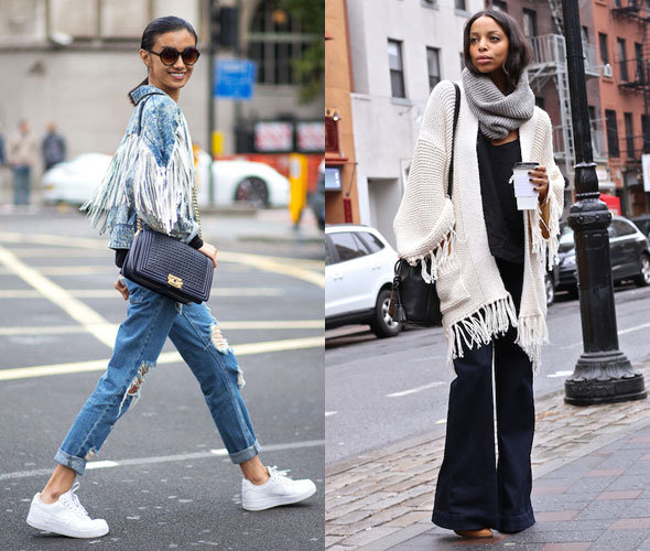 Сумка с бахромой поможет сделать самый лаконичный образ более расслабленным. Если вы отдаете предпочтение монохромным цветам и строгим вещам, сумка с бахромой, которая двигается в такт при каждом вашем шаге, будет выглядеть весьма стильно. Смотрите фотографии уличной моды для вдохновения!