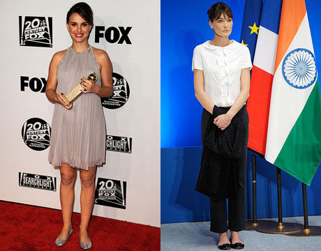 - Натали Портман произвела фурор, появившись на церемонии награждения «Золотой глобус» в положении. Ее ноги украшали изящные серебристые балетки;