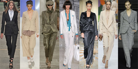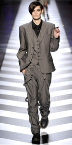 Нынешняя мода на мужские костюмы проглядывается в первую очередь в многообразии брючных костюмов (строгих черных, двубортных в тонкую полоску, атласных в стиле диско, свободного кроя из светлой фланели и многих других). Популярны вариации на тему знаменитых литературных подростков (Гаврош, Гарри Потер), а именно: брюки-гольф до колена, укороченные пиджаки, объемные кепи с большими козырьками, ботинки со шнуровкой.