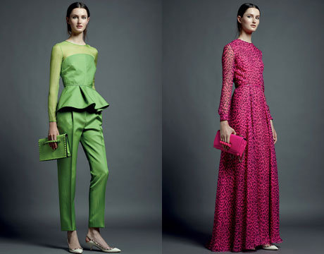 Легендарный дизайнер предлагает очень женственные наряды на любой случай – будь то завтрак на террасе отеля в коротком расклешенном платье с нежными цветами, обед в костюме, состоящем из узких брюк и топа с баской цвета свежей зелени, или торжественный ужин в шикарном вечернем платье-макси с розовым леопардовым принтом.