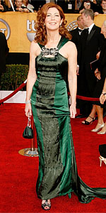 Американская актриса Дана Делани выбрала ридикюль на цепочке с камнями под цвет платья.