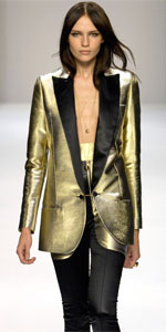 Еще один модный молодежный вариант – сочетание смокинга с узкими джинсами (или плотными кожаными леггинсами) и обувью на высоких каблуках (например, с ботильонами).