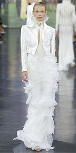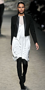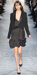 Вообще, строгий смокинг хорошо сочетается с юбками сложного кроя, с драпировками и рюшами. Такое сочетание придаст образу легкую бесшабашность, в то же время это будет выглядеть стильно и очень молодежно.