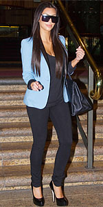 Ким Кардашян разбавила черный комплект элегантным голубым смокингом с черными лацканами. А Джессика Бил появилась в одном из американских телешоу в юбке-карандаше и черном классическом смокинге, лацканы которого были усыпаны стразами.