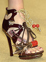 А вот в коллекции от Christian Lacroix появились босоножки с забавными цепочками на лодыжках. В принципе, в этом вполне угадывается восточное влияние.