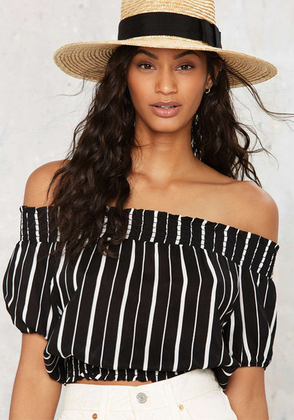 Даже на вечернем мероприятии тельняшка может быть актуальна. Разумеется, здесь речь идет уже не о классическом варианте, а об интерпретированной модели, например, это может быть боди или топ с контрастными полосками. Наиболее выигрышно такой верх будет смотреться в сочетании с широкими брюками прямого кроя или юбкой-карандаш длиной миди.