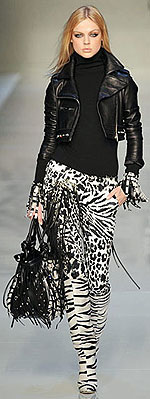 Нынешний осенне-зимний модный сезон вообще отмечен массовым возвращением звериных принтов в основные тренды. Кому-то это нравится, большинству женщин – увы, нет. Однако такое увлечение не могло не сказаться и на расцветке леггинсов.