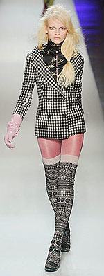 Но нельзя сказать, что нынешняя осень зациклена на каком-то конкретном рисунке. Возможно и допустимо все. Вопрос только в том, как подобрать к таким колготкам комплект одежды, а это непросто.