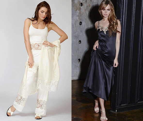 На фото слева: топ 6500 рублей, брюки 11 500 рублей, шаль 10 500 рублей, домашние тапочки 3800 рублей, все Petit Pas. На фото справа: комбинация Croisette (Бюстье), 5399 рублей.