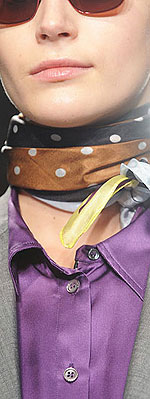 Пересмотрите культовые фильмы 70-х годов, и увидите на шее у большинства героинь небрежно повязанный шелковый платочек. И неважно, что на них надето - офисные блузки, рабочие комбинезоны, пестрые сарафаны хиппи. Платочек уместен везде.