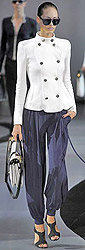 А если использованы мягкие драпирующиеся ткани и сборка на лодыжке, то сразу видно и влияние актуального ныне Востока.